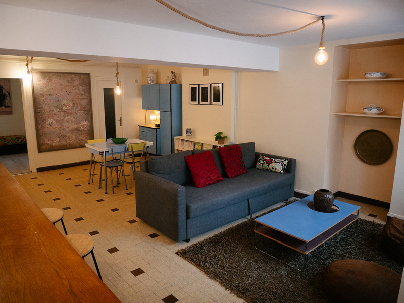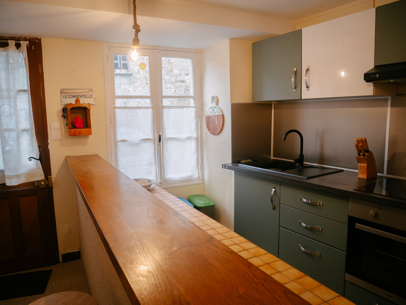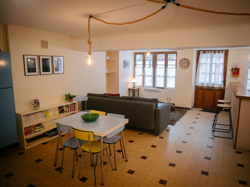 Charmante maison médiévale chaleureuse et spacieuse composée d’une grande chambre, d’une cuisine équipée et d’un salon doté d’un canapé convertible en confortable lit double.