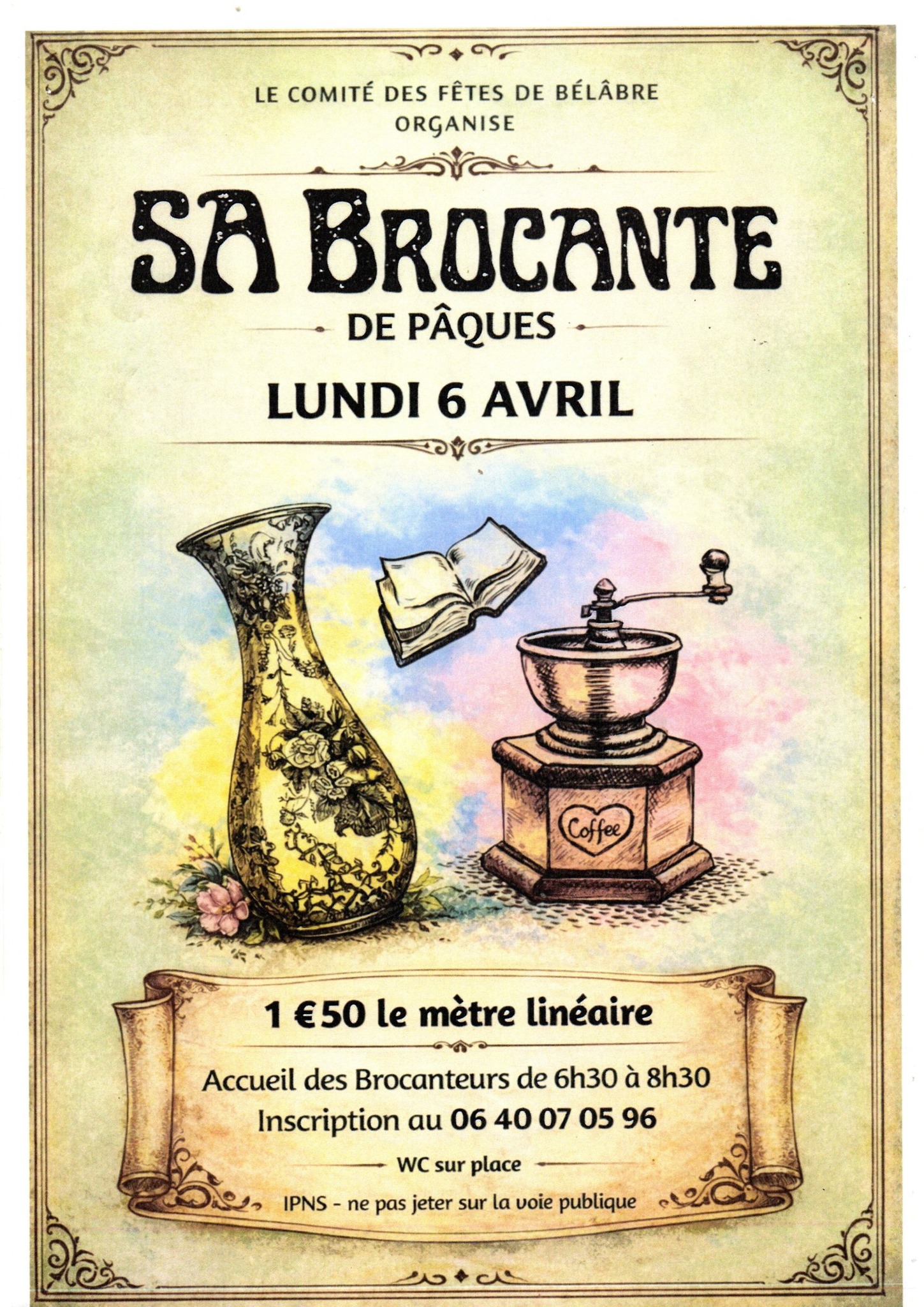 Durant toute la journée, venez chiner dans les rues de Bélâbre lors de la brocante organisée par le comité des fêtes.