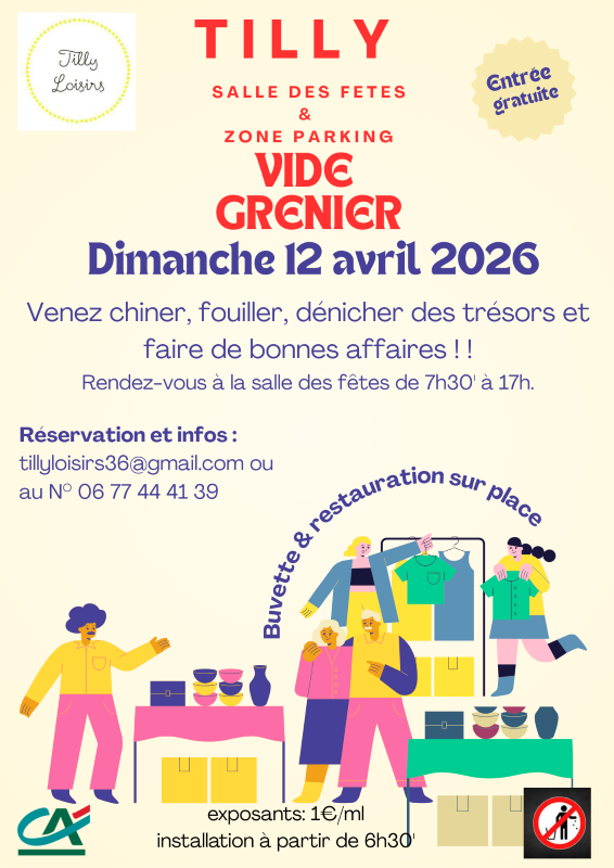Tilly Loisirs organise son 4ème vide-grenier. Petite restauration et boissons sur place.